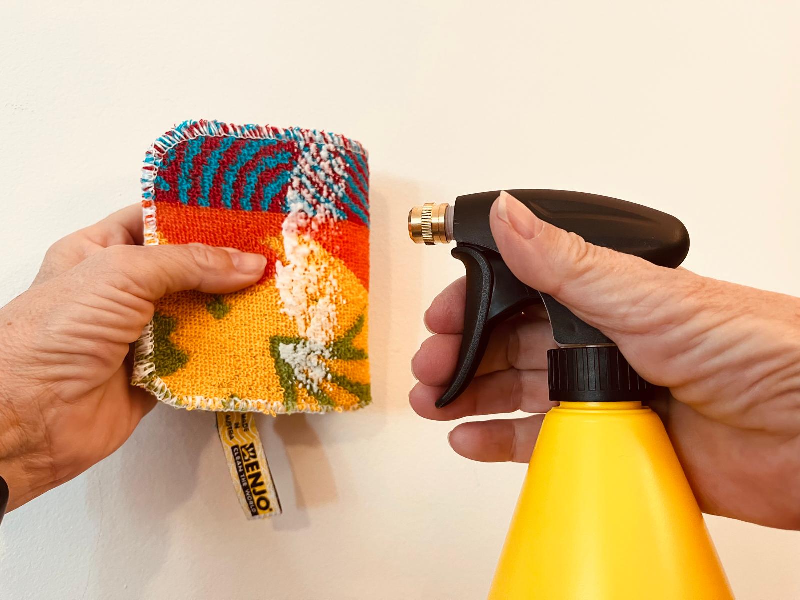 Simultaneously spray water, while gently scrubbing the stain & watch the stain disappear from the surface. Wipe clean with water & cloth.